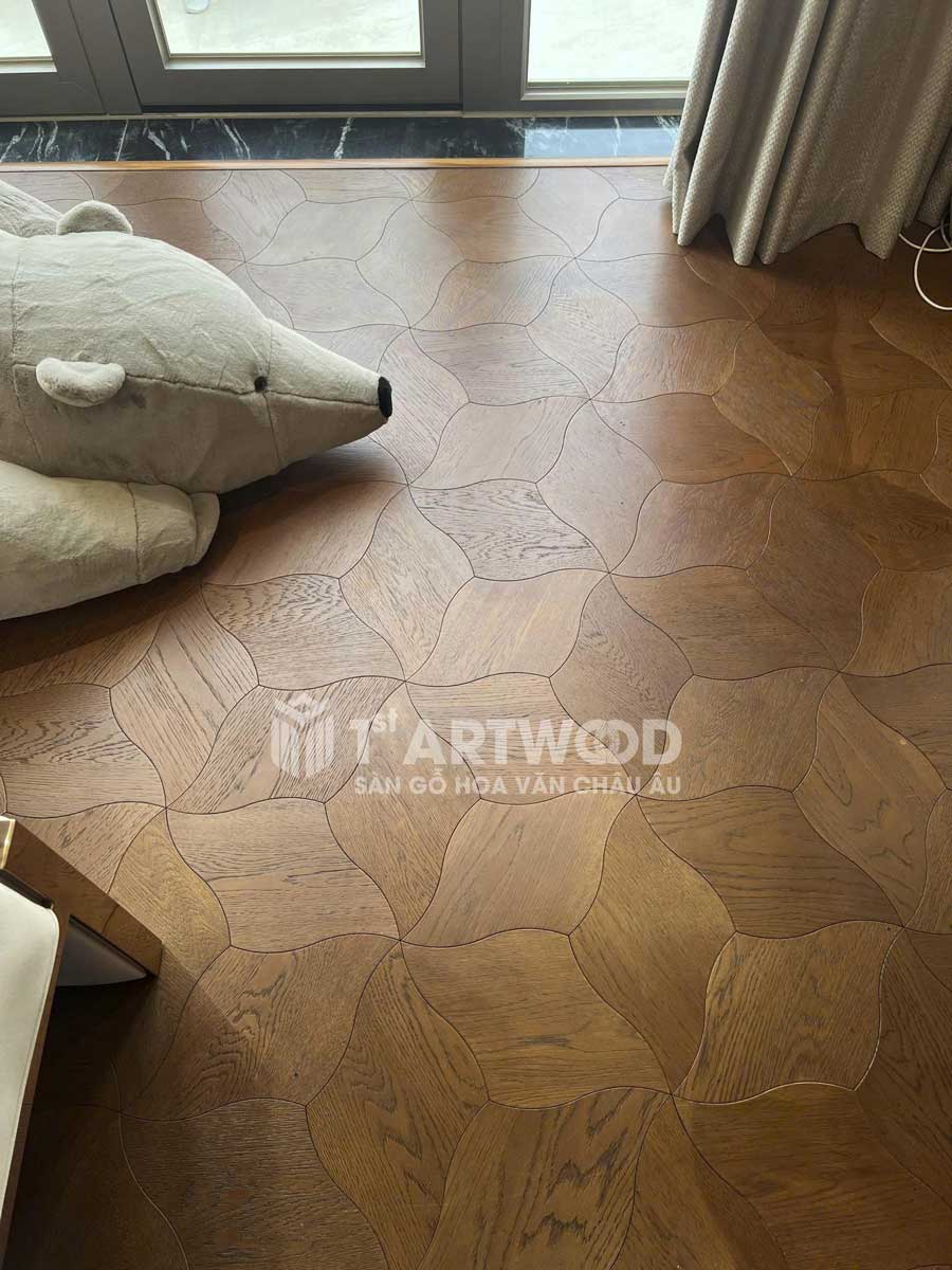 Hạng mục: Cung cấp & thi công sàn gỗ hoa văn cho toàn bộ không gian nội thất Sản phẩm: