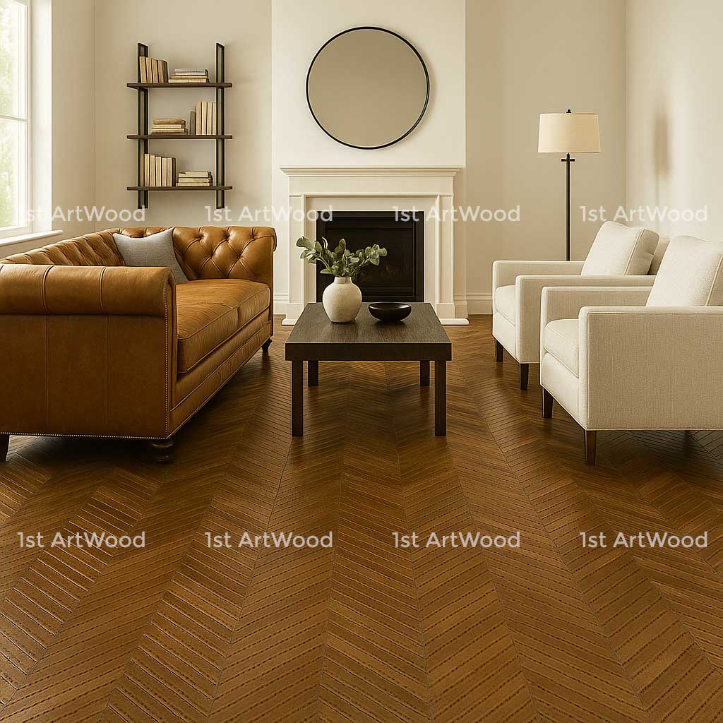 Sàn gỗ hoa văn không chỉ là phần lát nền, mà là một phần của kiến trúc: nó tạo không gian có linh hồn, bền vững cùng thời gian.